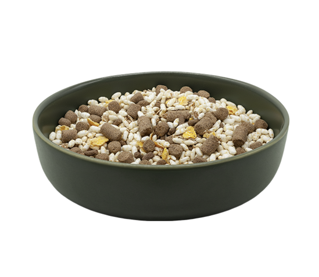 Složení: maso a vedlejší produkty živočišného původu 39% (drůbež, hovězí), kukuřice, rýže, sušené řepné řízky, čekanka obecná, minerální látky.